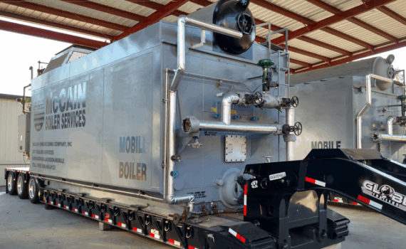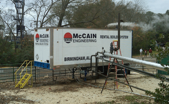 McCain offers packaged rental boiler equipment 24/7, from our Alabama and Mississippi inventory, for emergency or temporary steam and hot water requirements. Pre-positioned and ready for any emergency (complete with full time operators if needed) for Alabama, Tennessee, Georgia, Mississippi, Florida, Kentucky, South Carolina, Louisiana, and Arkansas.